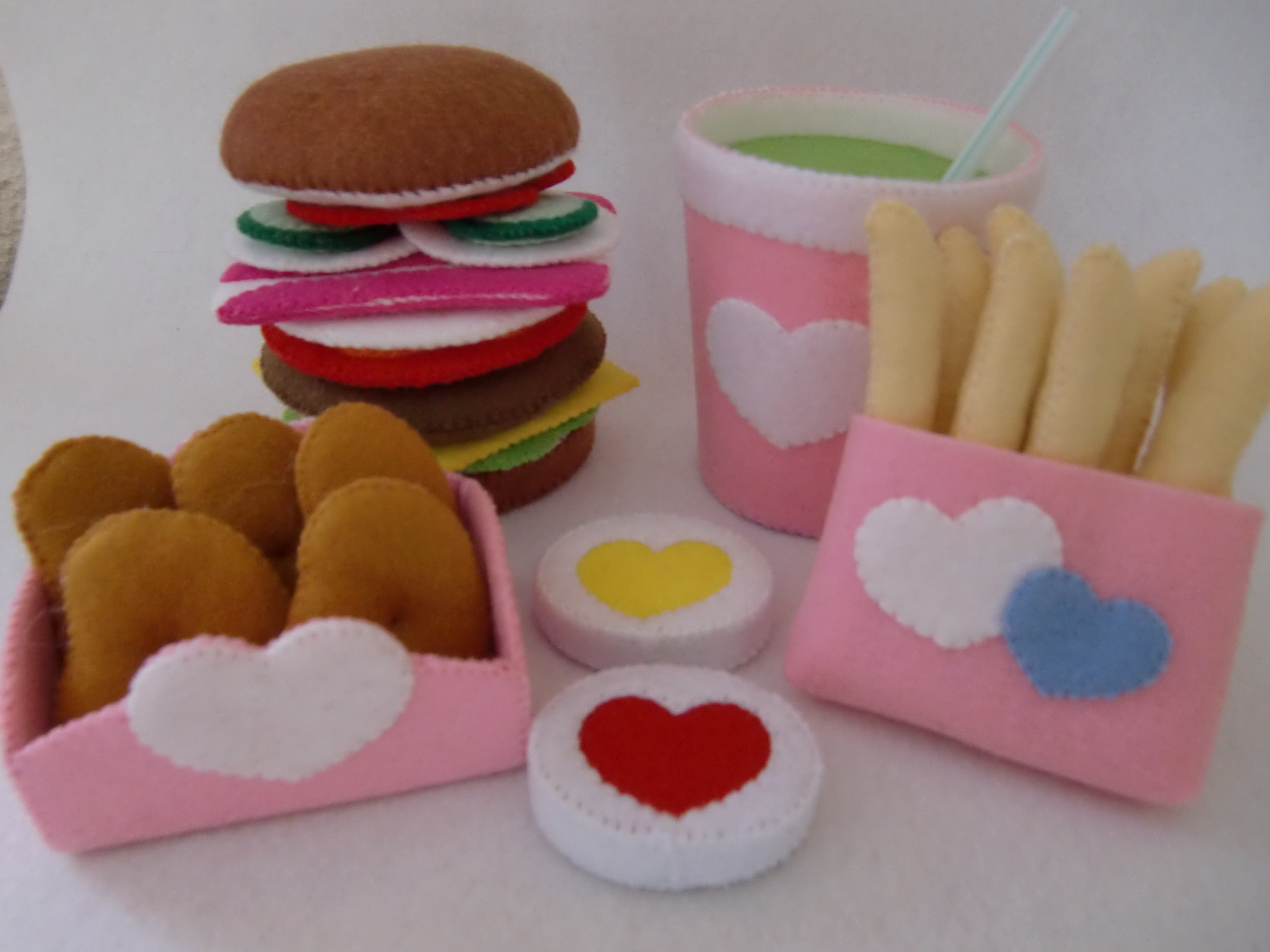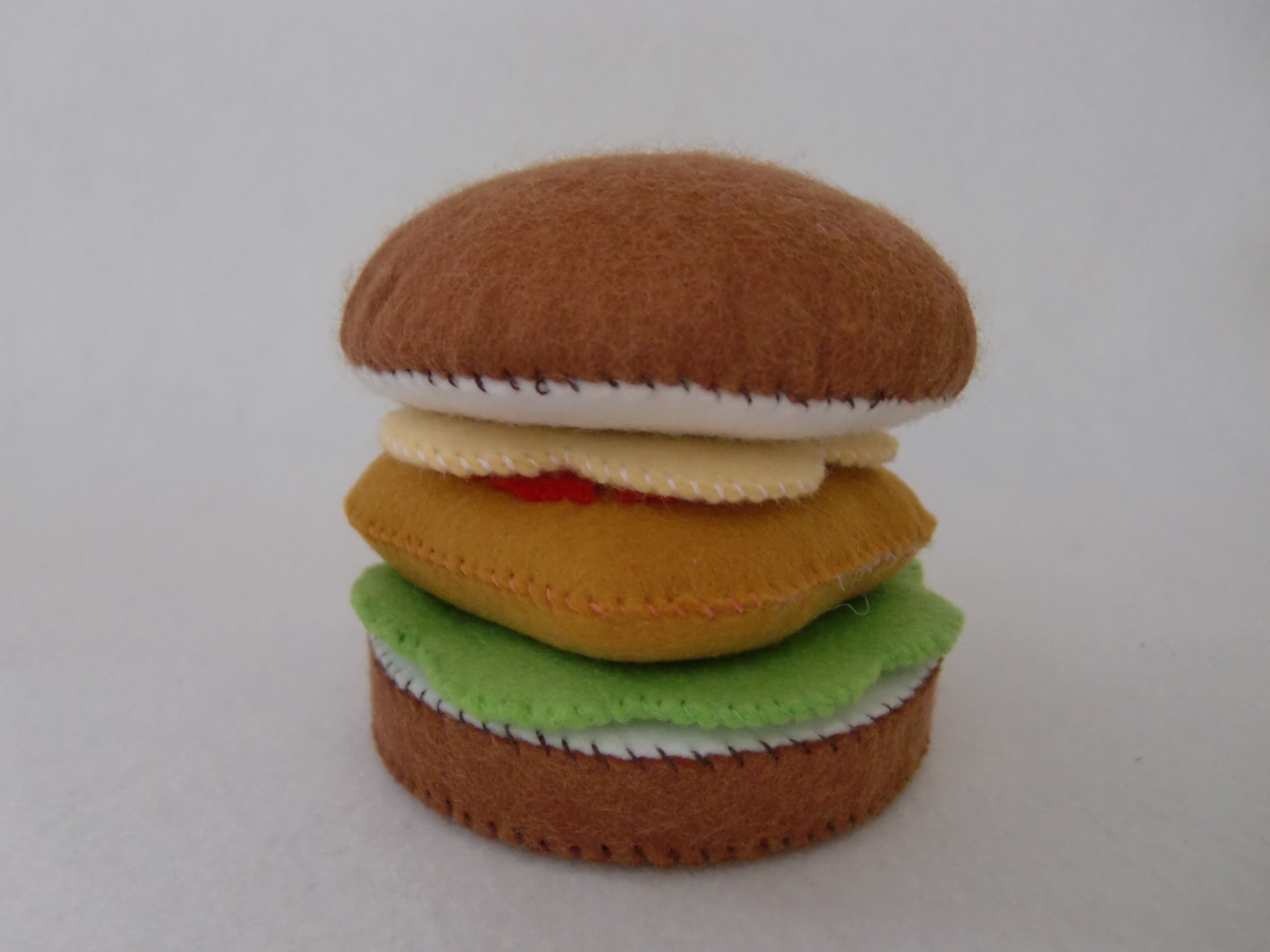 ご自身でフェルトで作ったハンバーガー屋さんセットを使っておままごとはいかがでしょうか?