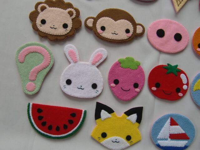 AならばAPPLEといった風にりんごの裏にはアルファベットのAを縫い付けてあるデザインで、めくりながらアルファベットと簡単な単語を一緒に覚えられるような仕組みになっております☆