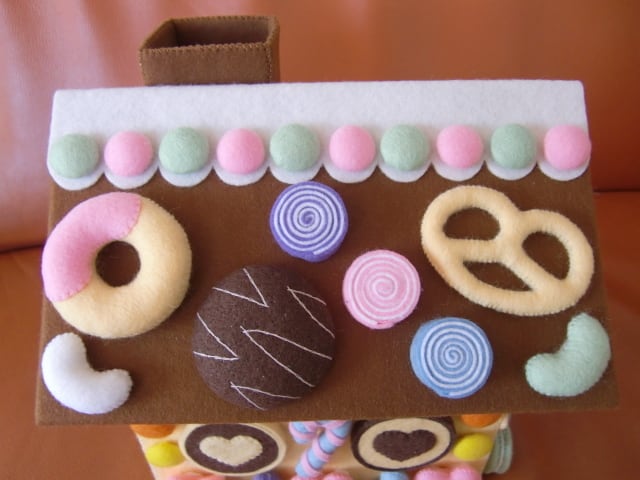 イラストレーターで作ったフェルトで作るお菓子の家の小物入れの型紙と作り方です☆